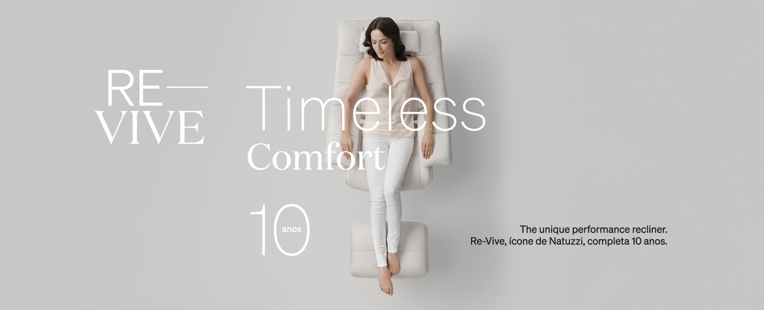 Natuzzi está celebrando uma década de um de seus ícones mais emblemáticos: a poltrona Re-vive. Ímpar e revolucionária, Re-vive expressa a personalidade do design contemporâneo em cada detalhe. Uma poltrona com alma tecnológica, exclusividade de uma marca inconfundível em matéria de design, estilo e sofisticação.